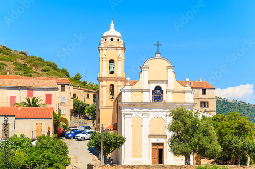 Fototapeta premium Typical church on Corsica island in Cargese village, France