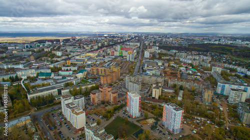 Fototapeta premium Typical city of Russia at sunset in center. Aerial view