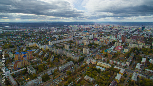 Fototapeta premium Typical city of Russia at sunset in center. Aerial view