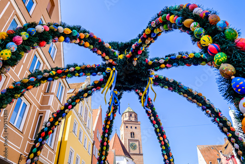 Fototapeta premium typical decorated easter well at the old town of Donauwörth