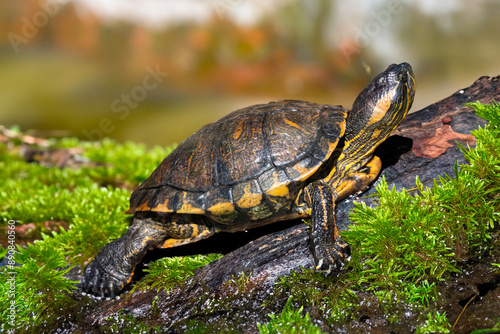 Obraz premium Typical freshwater turtle from the Brazilian Pantanal and Amazon rainforest,