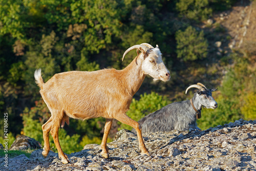 © jekatarinka, Obraz premium Typical Greek goats grazing on the rock formations of Meteora