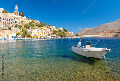 Naklejka premium Typical greek landscape in Symi island, Dodecanese, Greece