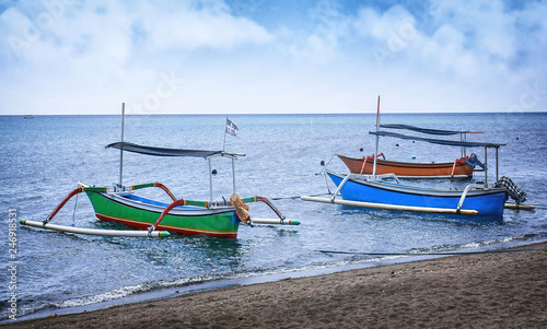 © Imagevixen, Fototapeta premium Typical indoensian boats called jukung on the beach of Lovina Bali Indonesia