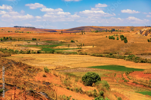 © Elena, Obraz premium Typical Madagascar landscape rice terrace fields