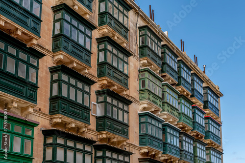 Fototapeta premium Typical Maltese colorful balconies called Gallarija in the historic center of Valletta, Malta