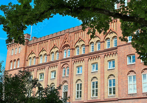 Fototapeta premium Typical old scandinavian red brick architectural building.