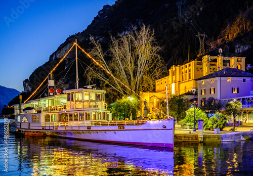Obraz premium typical passenger ship at the harbor of Riva del Garda - Italia