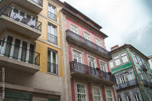 Fototapeta premium Typical residential building facades with colorful tiles wall in the city center of Porto Portugal Europe
