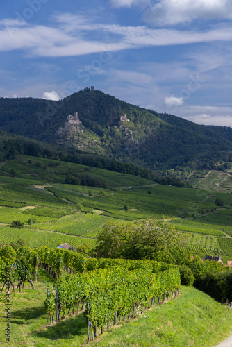 © Richard Semik, Fototapeta premium Typical vineyard near Hunawihr near Ribeauville Riquewihr, Haut-Rhin, Region Grand Est, Alsace, France