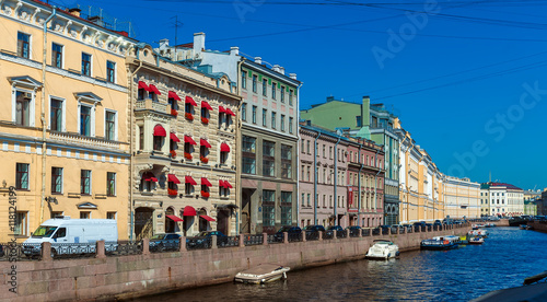 © Rostislav Ageev, Fototapeta premium Typical vintage building along channels, Saint Petersburg
