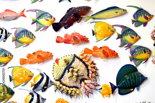 © etfoto, Naklejka premium typisch maltesische Glaskunst - tropische Fische aus Glas