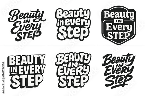 © Настя Шевчук, Fototapeta premium Typography Harmony Grid. Beauty in every step. Set lettering. harmonious lettering variations of the same emblematic concept (Bold hand-lettering with playful