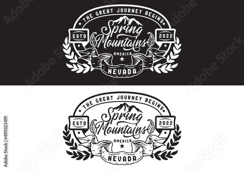 Fototapeta premium Typography Logo Spring Mountains Vector Illustration Template Good for Any...
