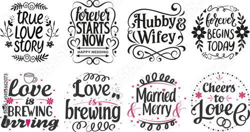 Fototapeta premium Typography Set for Marriage and Love Quotes