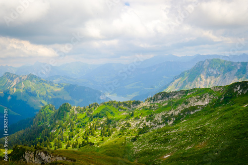 Fototapeta premium Typowe letnie góry Szwajcaria krajobraz w słoneczny dzień