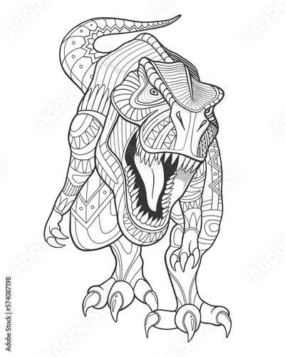 Fototapeta premium Tyrannosaur rex. Ancient reptile. Ornamental design. Page of coloring book....