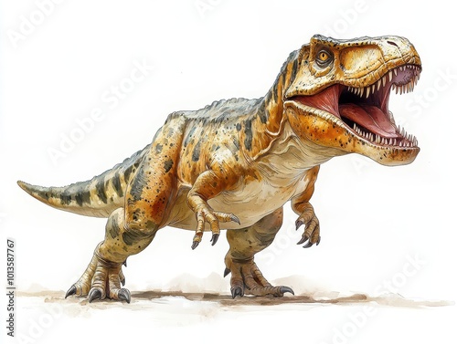 Naklejka premium tyrannosaurus rex depicted in a striking illustration against a white...