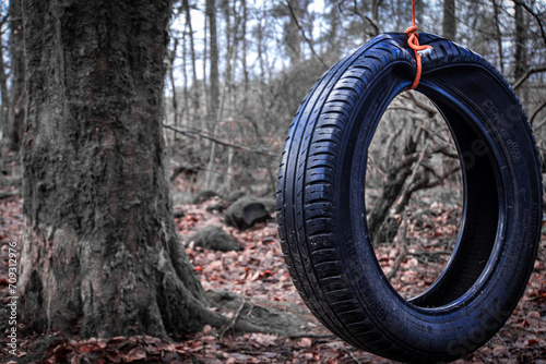 © Barry, Naklejka premium Tyre swing in a Forrest