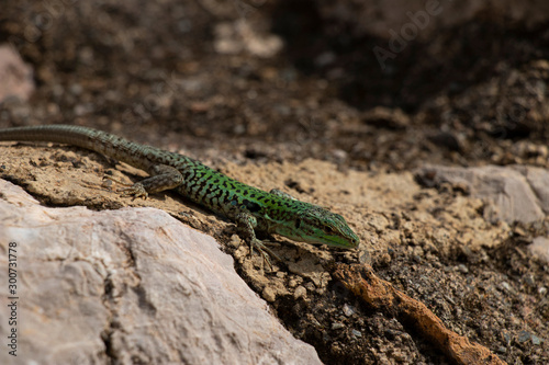 © SN, Naklejka premium tyrrhenian wall lizard on a rock in Italy
