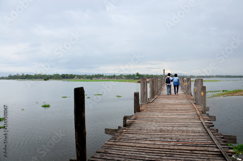 © Anirut, Naklejka premium U Bein longest teakwood bridge