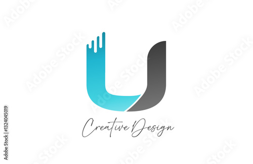 Fototapeta premium U blue grey cut letter alphabet logo icon design gradient for company or...