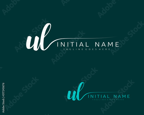© Linda, Fototapeta premium U L UL Initial handwriting logo vector. Hand lettering for designs.