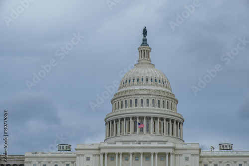 © Larry, Fototapeta premium U.S. Capitol Dome and Flag on a Cloudy Day