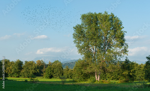 © Daniele Brambilla, Fototapeta premium Uccelli in migrazione in scenario agreste