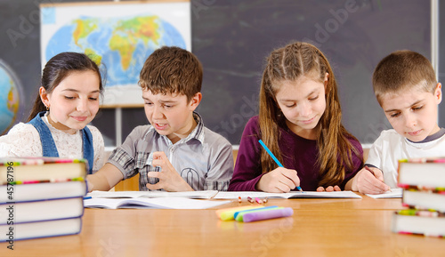 © spass, Fototapeta premium Uczniowie szkół podstawowych w klasie podczas lekcji