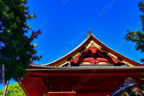 © Arnupaap, Fototapeta premium Ueno Shrine in The Morning, the Japanese shrine with the clear blue-sky background