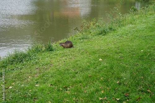 Fototapeta premium Uferlandschaft mit einer Biberratte