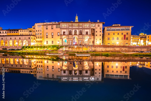 Fototapeta premium Uffizi gallery and Arno river waterfront evening reflections in Florence
