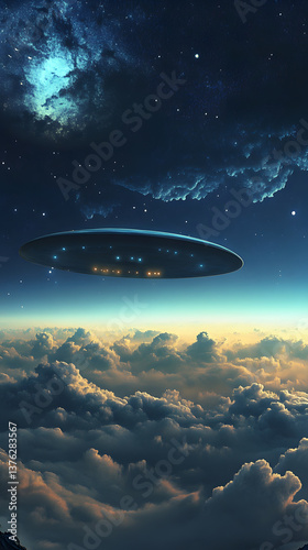 Obraz premium UFO Hovering Above the Clouds