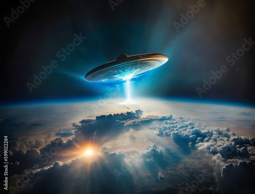 © Artify, Obraz premium UFO Shuttle Approaching Earth