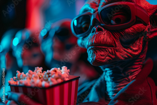 © Tetiana, Fototapeta premium UFO space visitor alien on Earth living human life with everyday routine staff, Generative AI