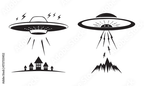 Fototapeta premium UFO Vector Silhouettes and Alien Spaceship Clipart – Flying Saucer Icons for...