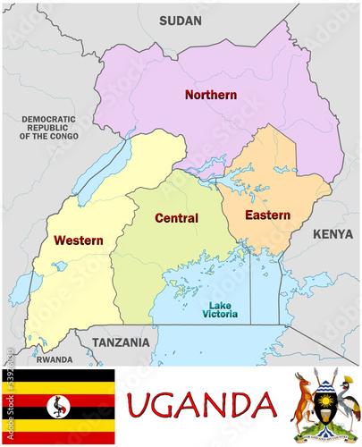© juan35mm, Obraz premium Uganda Africa national emblem map symbol motto