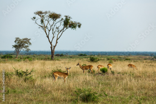 Naklejka premium Ugandan kobs in african savanna. Queen Elizabeth National Park, Uganda