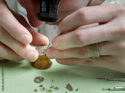 © Jochen Seelhammer, Fototapeta premium Uhrmacher, Uhr in Reparatur