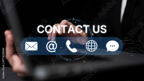 Obraz premium UI concept for contact us section showing icons for email, web, phone, and...