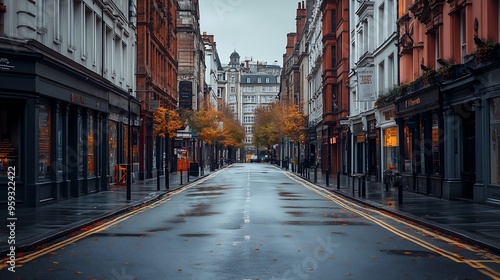 © Generative AI, Fototapeta premium UK England London Empty street in middle of city : Generative AI