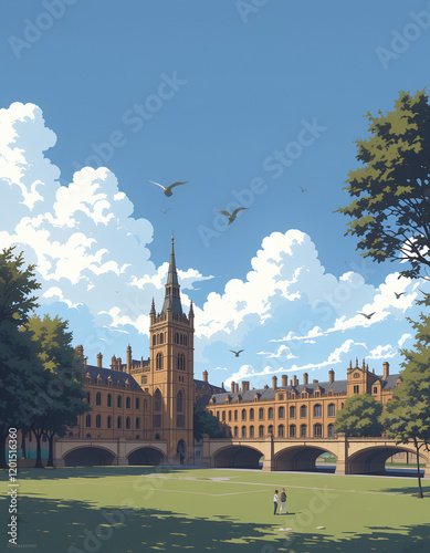 © SKV3, Obraz premium UK: Modern Poster Illustration Travel Print Decor Gift Paper Canvas Wall Retro Art