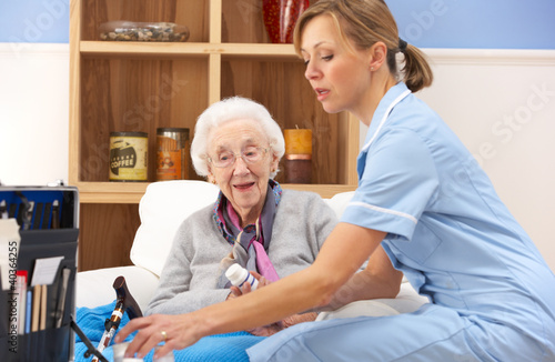 © Monkey Business, Obraz premium UK nurse visiting senior woman at home