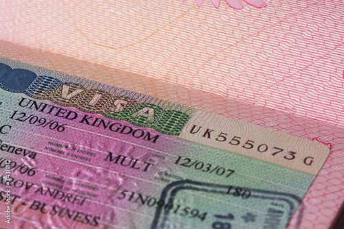 © Andrei Kazarov, Fototapeta premium uk visa in passport