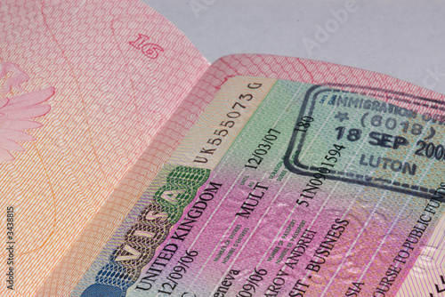 © Andrei Kazarov, Fototapeta premium uk visa in passport