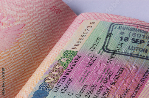 © Andrei Kazarov, Fototapeta premium uk visa in passport
