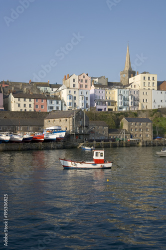 Obraz premium UK, Wales, Pembrokeshire, Tenby, colourful houses line the harbour