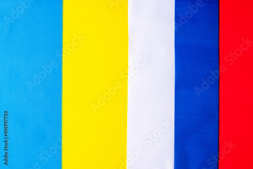 Fototapeta premium Ukraine. and Russia flags. Pray, No war, stop war, conflict and relationship...