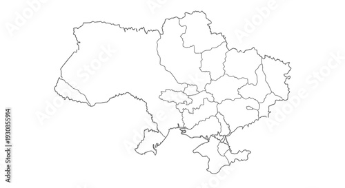 © paijo, Obraz premium Ukraine Country Outline Map with Administrative Regions, isolated white background